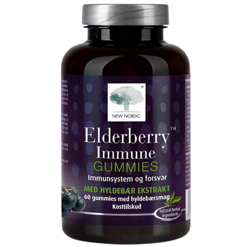 New Nordic Elderberry Gummies (60 stk) er et kosttilskud i form af bløde gummies, der gør det sjovere og mere lækkert at tage dit kosttilskud. Disse gummies har en blød konsistens, og en skøn hyldebærsmag, der gør disse veganske gummies perfekte til dig, der ikke ønsker at synke kapsler eller tabletter.