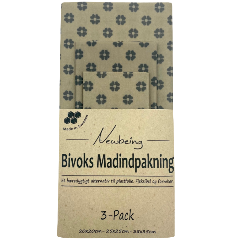 Hold din mad frisk på en naturlig og bæredygtig måde med disse bivokswraps fra Newbeing. De er et genanvendeligt alternativ til plastfolie, kan bruges i op til 2 år og er fremstillet i Sverige.