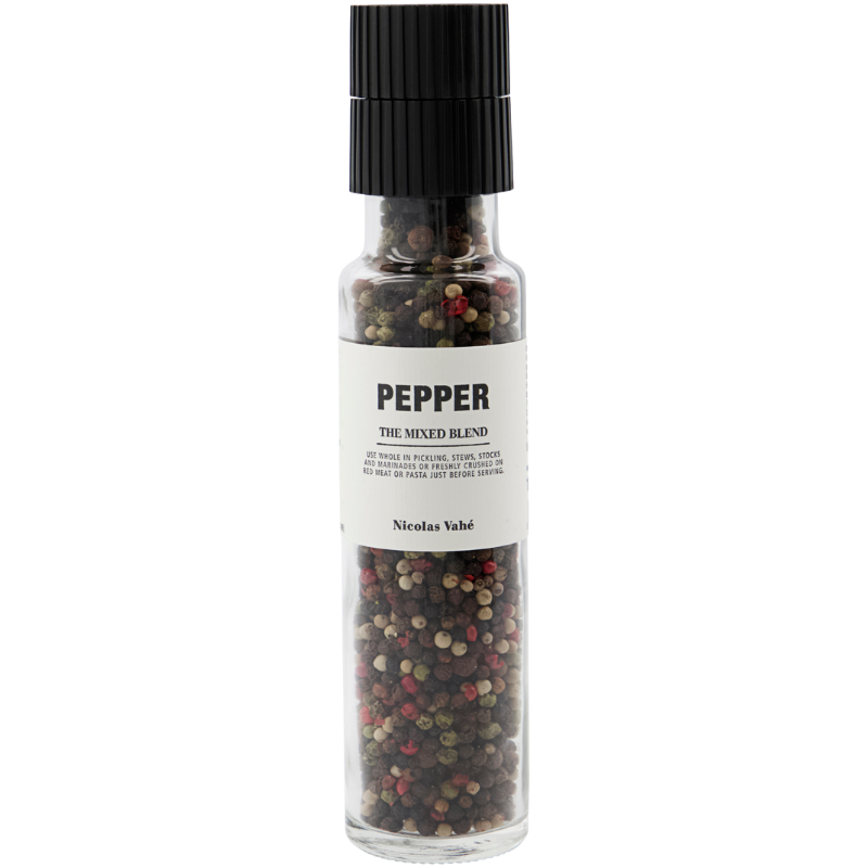 Denne klassiske pebermix fra Nicolas Vahé indeholder en blanding af 5 typer peber: Hvid, rød, grøn, pink og sort. Mixet er perfekt til at give din retter en krydret kick. Produktet kommer i en praktisk og flot glaskværn, der vil passe perekt ind i ethvert køkken eller pynte på et spisebord.