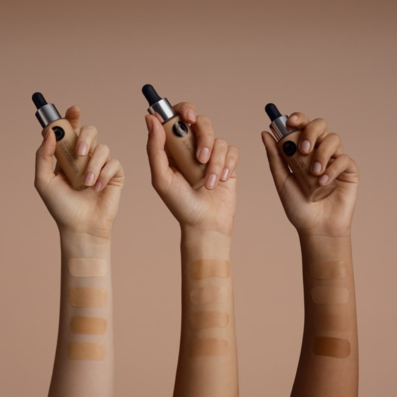 Foundationen er bygget op som et serum, der bidrager til en utroligt fin tekstur, som hurtigt trænger ind i huden. Samtidigt efterlader den et fint og ensartet look på huden.