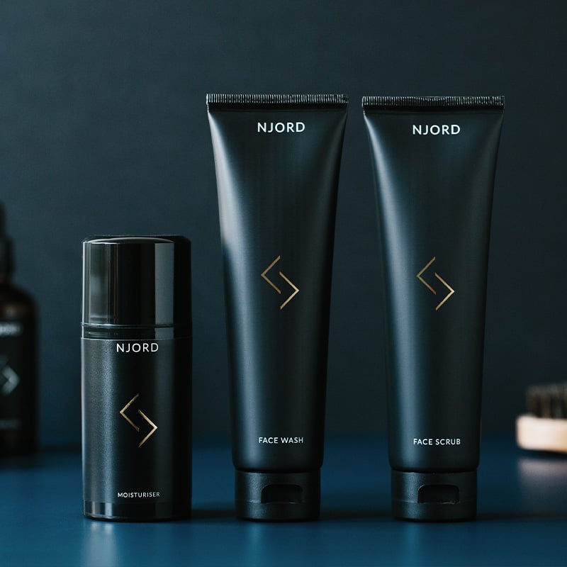 Dette lækre ansigtssæt fra Njord er til de mænd, der ønsker at gøre noget ved de små trælse urenheder i ansigtet og ved en daglig rensning og fugtgivelse til huden.De 3 essentielle produkter er Njord Face Scrub, Njord Face Wash og Njord Moisturiser. Sættet har et meget stilet look, og man får samtidigt en flot og mandig toilettaske med i købet. Den har tilstrækkelig med plads, så du kan have alle dine yndlingsprodukter, er moderigtig og vil holde i mange år.