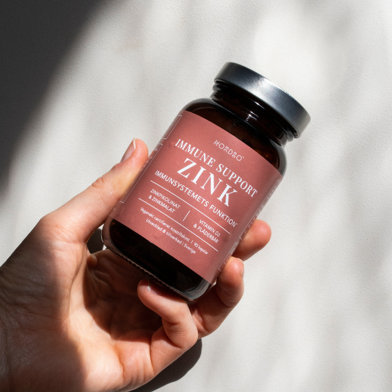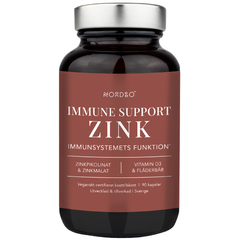 Giv dit immunforsvar støtte med Nordbo Immune Support Zink. En unik formel med zink, D-vitamin og sort hyldebærekstrakt, der bidrager til at vedligeholde et normalt fungerende immunforsvar og beskytte cellerne mod oxidativt stress.