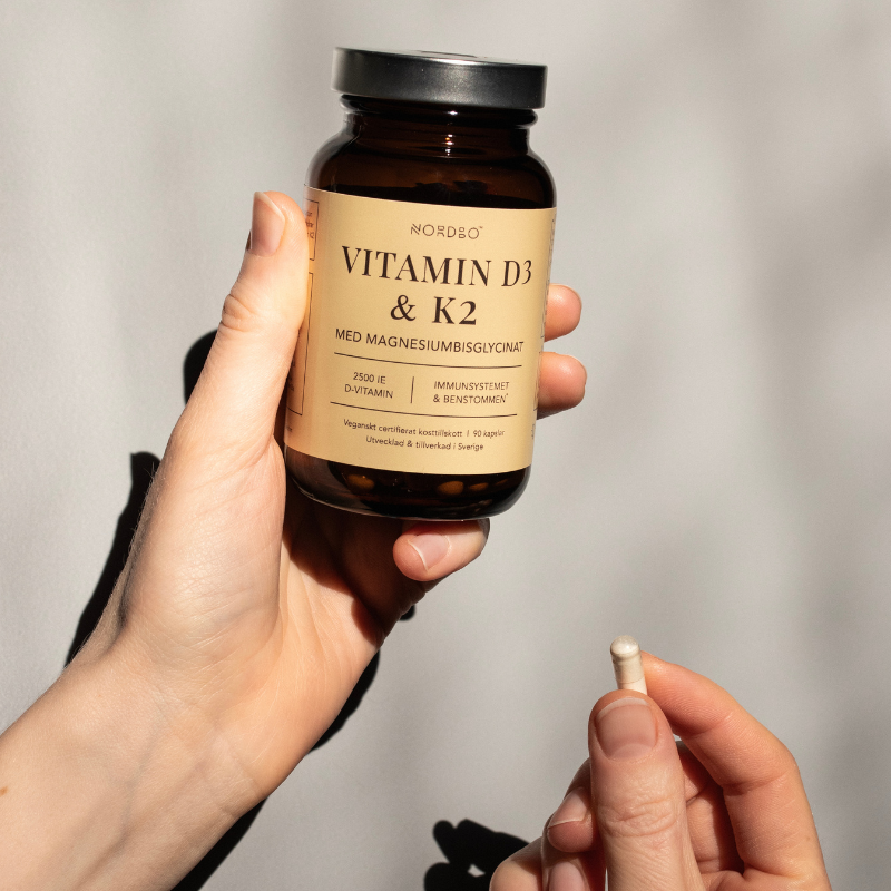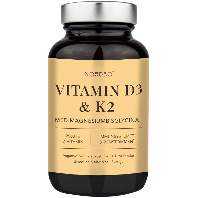 Støt dit immunforsvar og vedligehold dine knogler med dette veganske kosttilskud. Nordbo Vitamin D3 & K2 indeholder en effektiv kombination af biologisk aktivt D3-vitamin fra alger og K2-vitamin for dit daglige velvære.