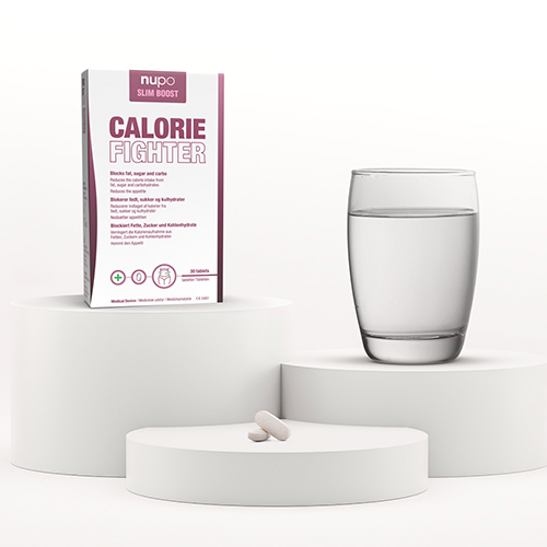 Nupo Slim Boost Calorie Fighter reducerer optagelsen af fedt, sukker og kulhydrater, hjælper mod overspisning og er velegnet til veganere.