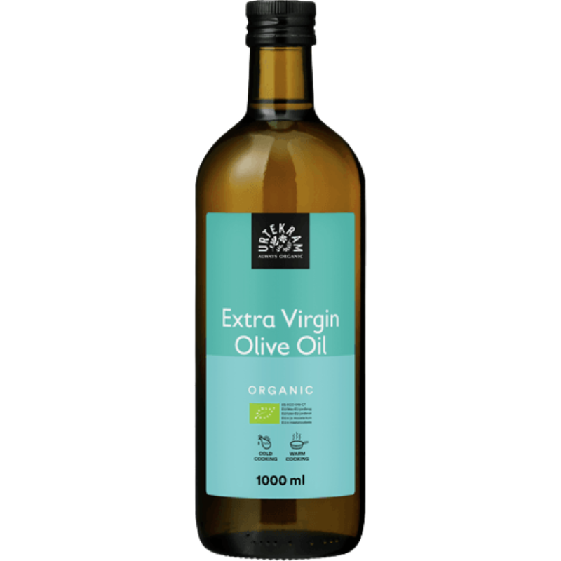 Urtekrams olie lavet af økologiske oliven. En kraftig og frugtig olivenolie med et strejf af peber i eftersmagen. Velegnet til madlavning, salatdressinger samt kolde og varme marinader.