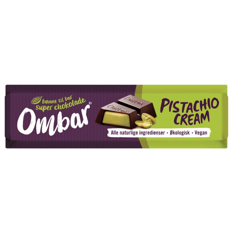 Forkæl dig selv med denne økologiske chokoladebar fra Ombar. Oplev den luksuriøse kombination af dyb, rig chokolade og den delikate, nøddeagtige smag af ægte pistacie – en udsøgt nydelse for dine smagsløg.