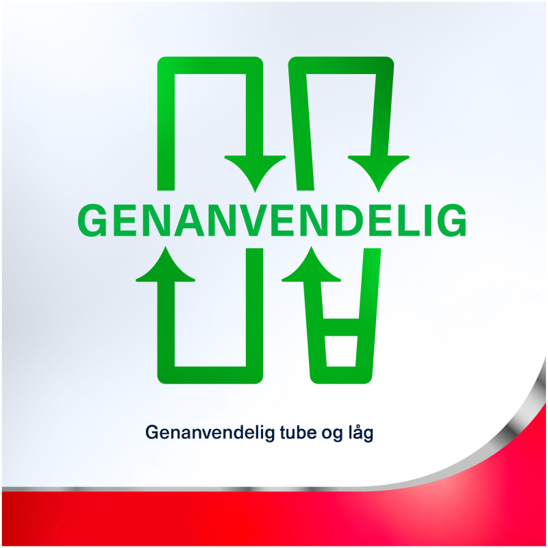 Børst to gange dagligt og ikke oftere end tre gange, minimer indtagelsen og spyt ud. Kontakt tandlæge dersom symptomerne vedvarer eller forværres, eller hvis børn har blødende tandkød. Ophør med brugen, hvisirritation opstår. Tal med din tandlæge eller læge så hurtigt som muligt, hvis du oplever hævelse af mund eller ansigt. Ikke egnet for børn under 12 år. Opbevares utilgængeligt for børn. Må ikke anvendes, hvis forseglingen er brudt.