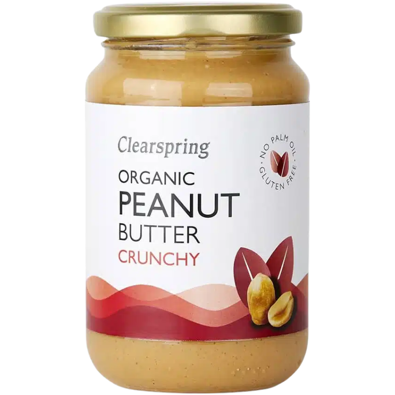 Clearsprings lækre økologisk crunchy peanutbutter med et indhold af jordnødder på 99,4%. Smager godt bare som snack – en teskefuld direkte fra glasset, som pålæg, i madretter eller kager. Glutenfri og uden palmeolie.