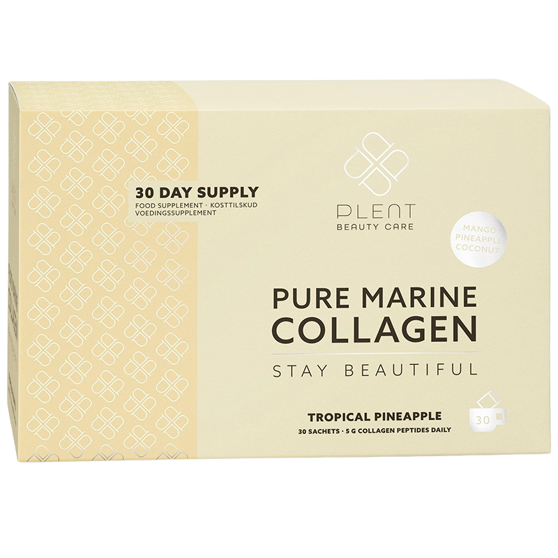 Plent Pure Marine Collagen Tropical Pineapple Packs (30 stk) er hydrolyseret marine kollagen fra bæredygtigt landbrug med tilsat vitamin C fra acerola. Dette kollagen kosttilskud er fremstillet med 80 mg naturlig vitamin C, der bidrager til normal dannelse af kollagen.