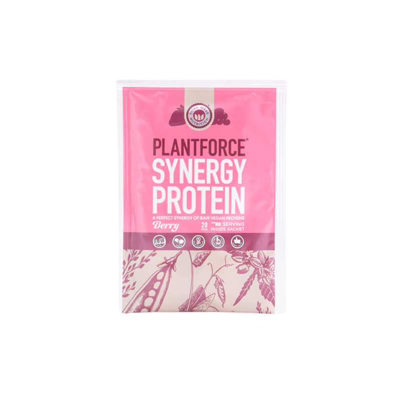 Plantforce Synergy Protein er en perfekt synergi af lavallergene og komplementære raw plantebaserede proteiner. Fås i flere varianter.Varianterne bær, vanilje og chokolade er fremstillet med 100% naturlig smag under de strenge EU-regler, og er sødet naturligt med steviol glykosider udvundet fra steviaplantens blade. Produktet er velegnet til folk som lever vegansk eller vegetarisk.