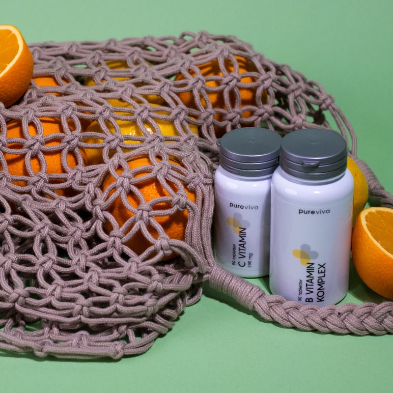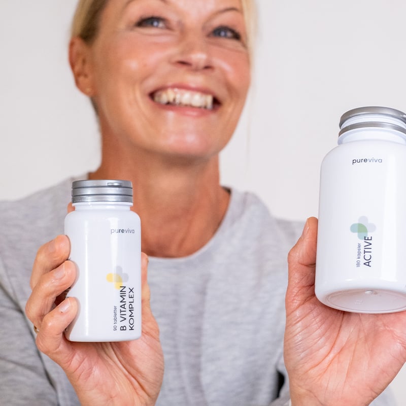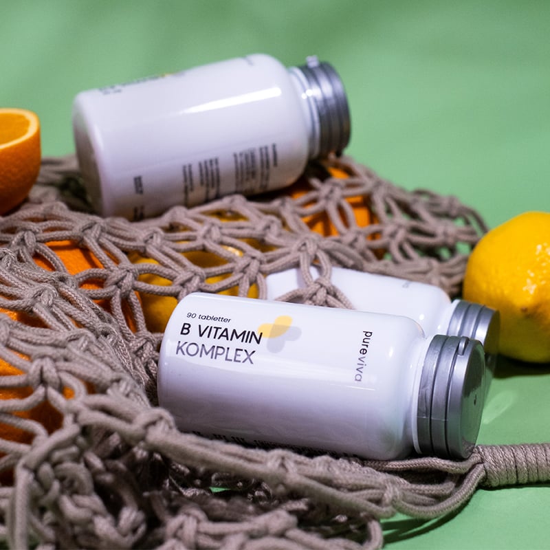 Pureviva B Vitamin Komplex giver energi, støtter nerver og immunforsvar med alle B-vitaminer, magnesium og C-vitamin – kun én tablet dagligt!