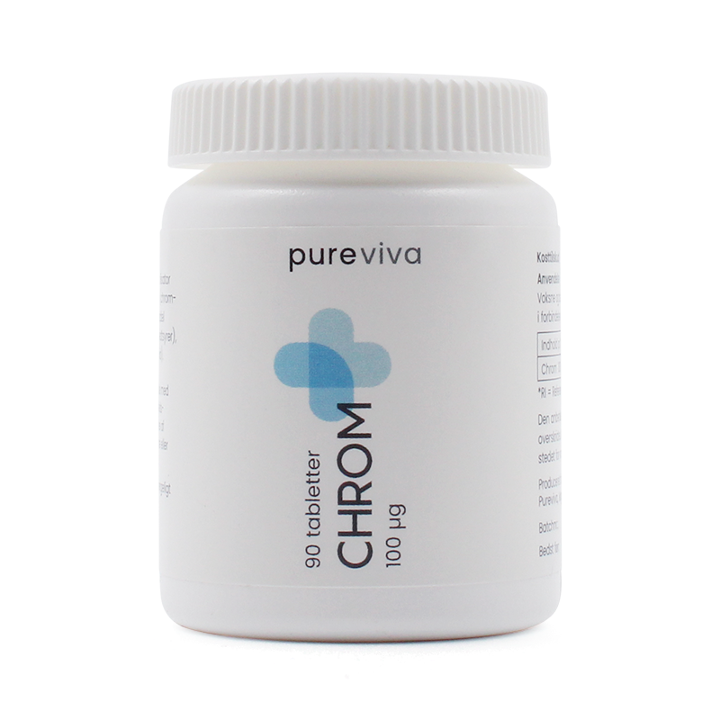 Pureviva Chrom 100 µg (90 tabl) er et mineral kosttilskud i form af 90 tabletter, der er formuleret med 100 µg chrom pr daglige dosis. Chrom er et mineral, der bidrager til vedligeholdelse af et normalt blodsukkerniveau.