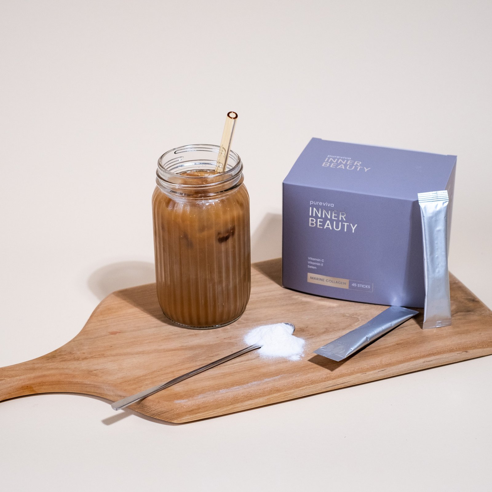 Der findes nærmest ingen grænser for, hvad du kan blande Pureviva Inner Beauty Marine Collagen med – måske en lækker iskaffe?
