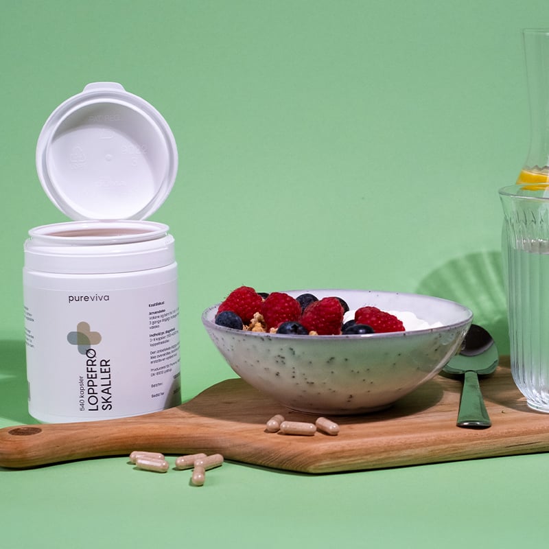 Pureviva Loppefrøskaller (540 kaps) er et kosttilskud i form af 540 kapsler, der er fremstillet med Psyllium eller måske bedre kendt som Loppefrøskaller. Loppefrø stammer fra planten ved navn Plantago ovata. Loppefrøskaller er, som navnet lidt siger, skallerne fra selve frøene. Disse kapsler bør indtages med rigeligt væske