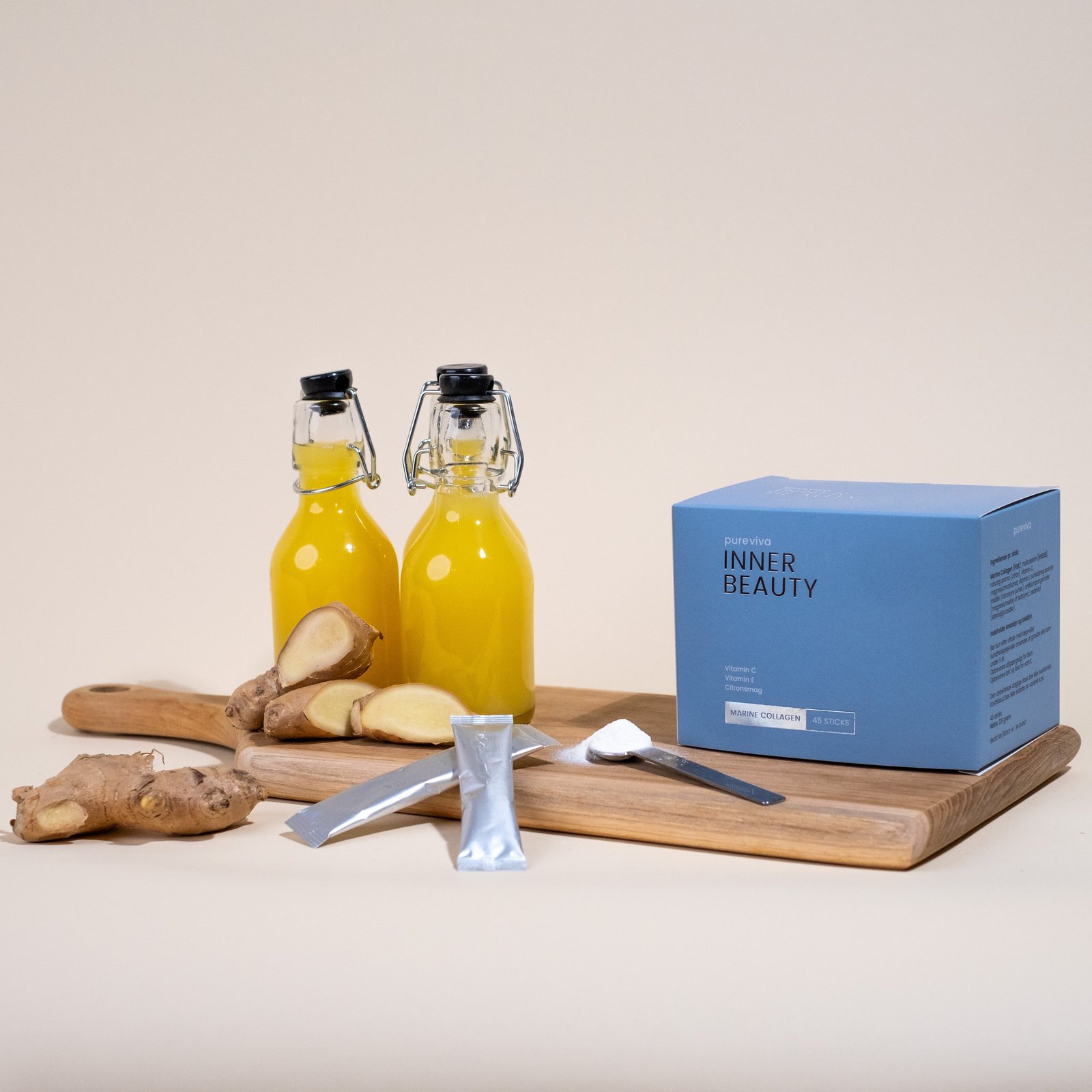 Smoothie med Pureviva Inner Beauty Marine Collagen Citron