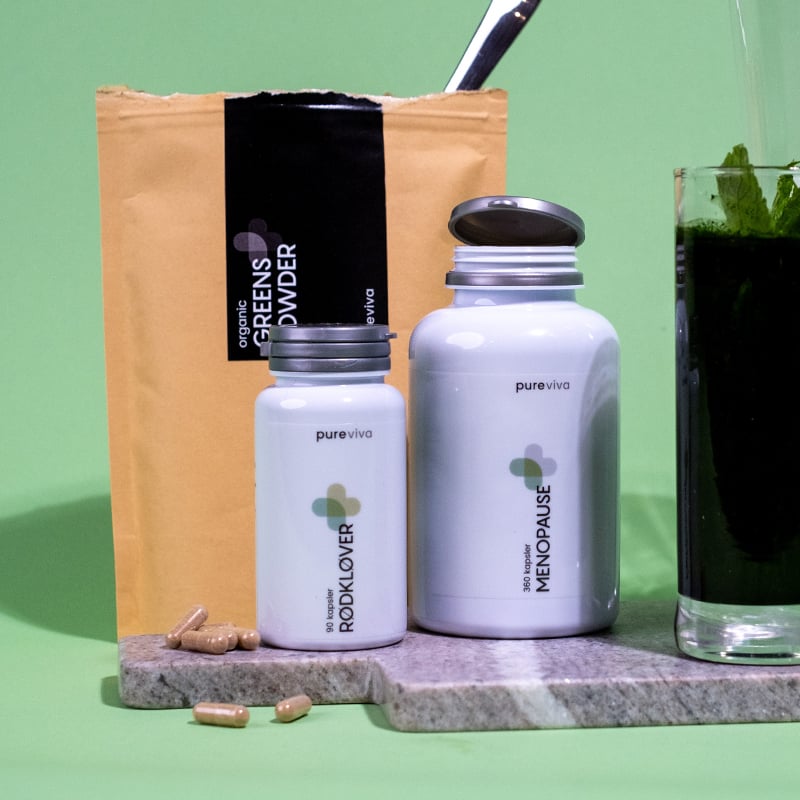 Naturlig rødkløver fra Pureviva, som er udviklet til kvinder i overgangsalderen.