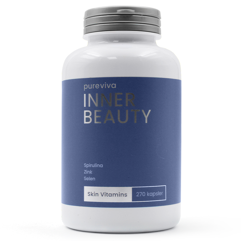 Pureviva Inner Beauty Skin Vitamins styrker hud, hår og negle indefra med antioxidanter, vitaminer og mineraler.