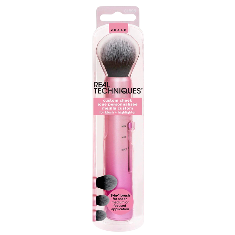Skab dit perfekte look med Real Techniques Custom Cheek børsten. Denne innovative børste giver dig fuld kontrol over din makeup, så du nemt kan skifte mellem en let, naturlig glød og en mere defineret finish. Perfekt til blush, bronzer og highlighter.
