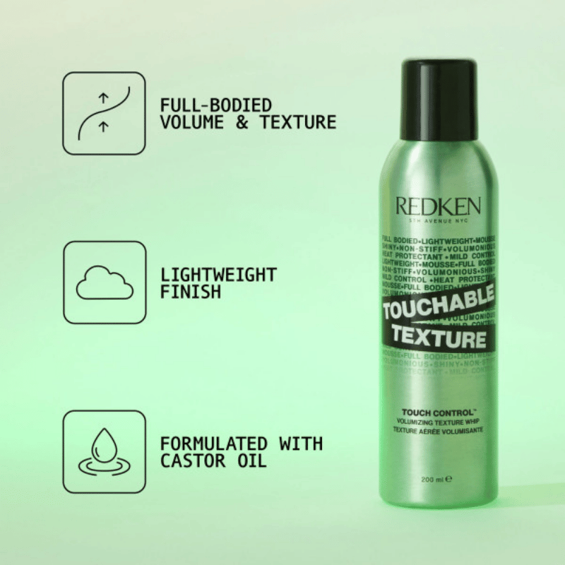Giv dit hår utrolig volumen, form og bevægelse med Redken Touchable Texture. Denne lette stylingmousse skaber et fyldigt look med en fleksibel finish, så dit hår føles naturligt og levende hele dagen.
