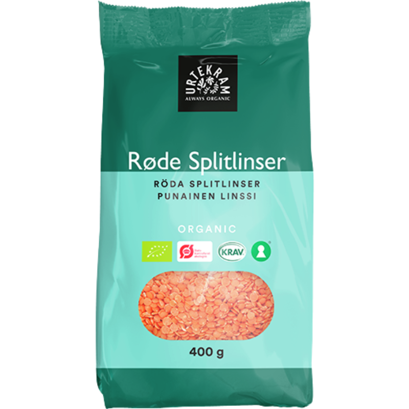 Urtekram Røde Splitlinser Ø (400 gr) er afskallede og flækkede røde linser fra Urtekrams eget fair trade projekt "Good Food Foundation" i Tyrkiet.