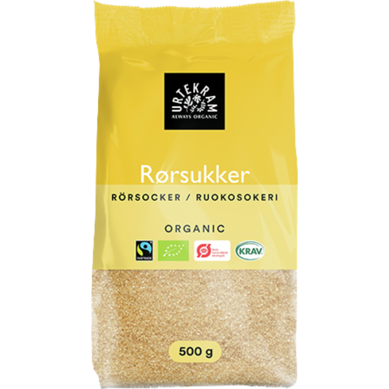 Rørsukker Max Havelaar Øko Uraffineret rørsukker fra Paraguay. Saften fra sukkerrørene inddampes, udkrystaliseres og renses.