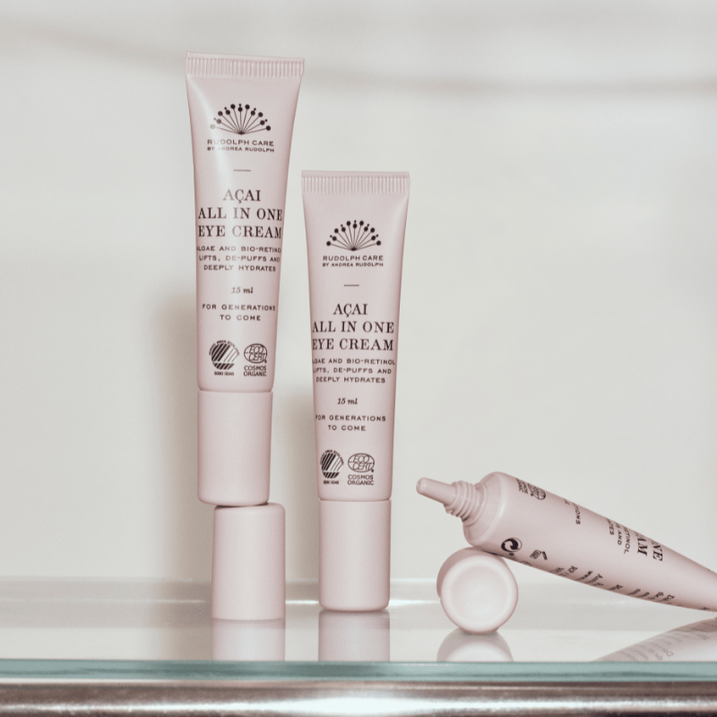 Açai All in One Eye Cream er til dig, der forventer alt af din øjencreme; synlige resultater fra aktive ingredienser og en silkeblød og rig konsistens, som ikke tynger den sarte hud om øjnene. Øjencremen består af en effektiv formel baseret på den revolutionerende ingrediens RetinART, et virksomt bio-retinol, som stimulerer huden til at øge produktionen af kollagen, så synligheden af rynker og linjer bliver mindre. Øjencremen løfter og opfrisker huden og giver et boost af intens og langvarende fugt fra hyaluronsyre – og den naturlige ingrediens terminalia arjuna øger mikrocirkulationen i øjenområdet, så hævelse og mørke rande bliver synligt dæmpet. Øjencremen karakteriseres naturligvis også af Rudolph Cares kerneingrediens, açaibærret, som styrker og beskytter huden med antioxidanter, mineraler og essentielle fedtsyrer. Certificeret med Svanemærket, Ecocert COSMOS Organic og Vegan Trademark.Godt at vide:- Rudolph Care