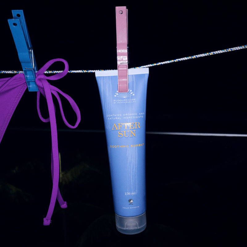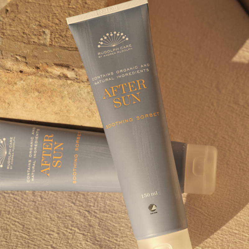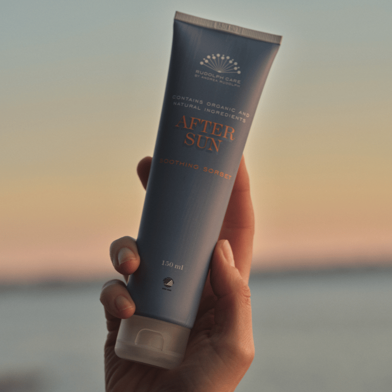 Aftersun Soothing Sorbet er en beroligende aftersun lotion til varm, solmættet hud. Huden køles, næres og fugtes med naturlige ingredienser, der sørger for hudens behov efter en dag i solen. Produktet er velegnet til hele familien. Certificeret med Svanemærket og Vegan Trademark.Godt at vide:- Rudolph Care