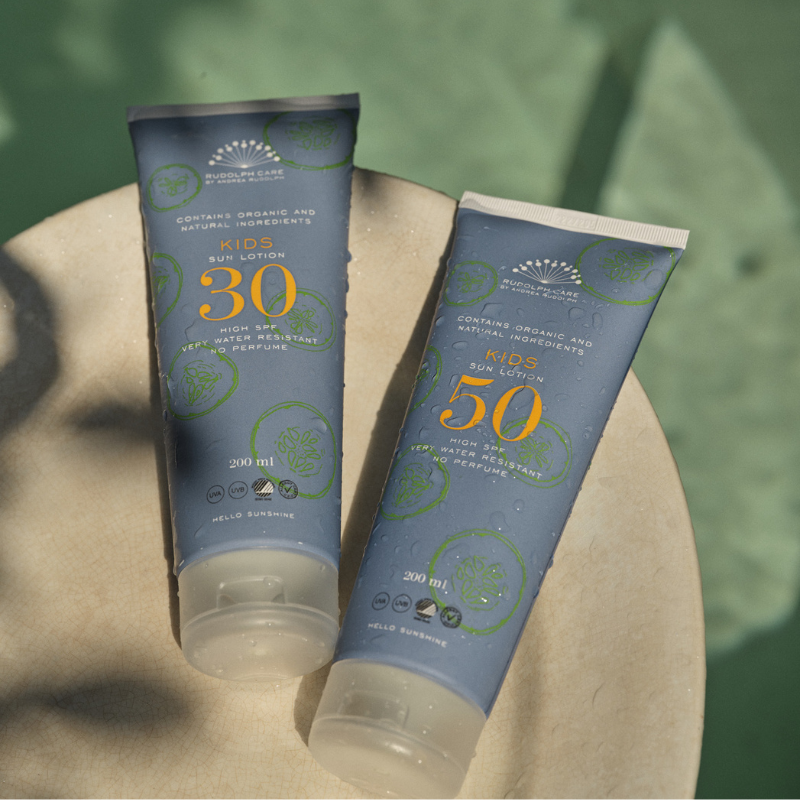 En mild og vandafvisende sollotion, der nænsomt og effektivt beskytter dit barns hud mod solens skadelige UVA- og UVB-stråler. Kids Sun Lotion er 100 % fri for parfume, men er rig på fugtgivende agurkekstrakt, nærende rapsolie, beroligende kamille og kølende aloe vera. Kids Sun Lotion giver huden ro og tilfører den fugt, dit barn har brug for. Cremen har en fin og let konsistens, der gør den nem at smøre ud. Kids Sun Lotion trænger ind i huden med det samme. Den fedter ikke, klistrer ikke, hvidter ikke.