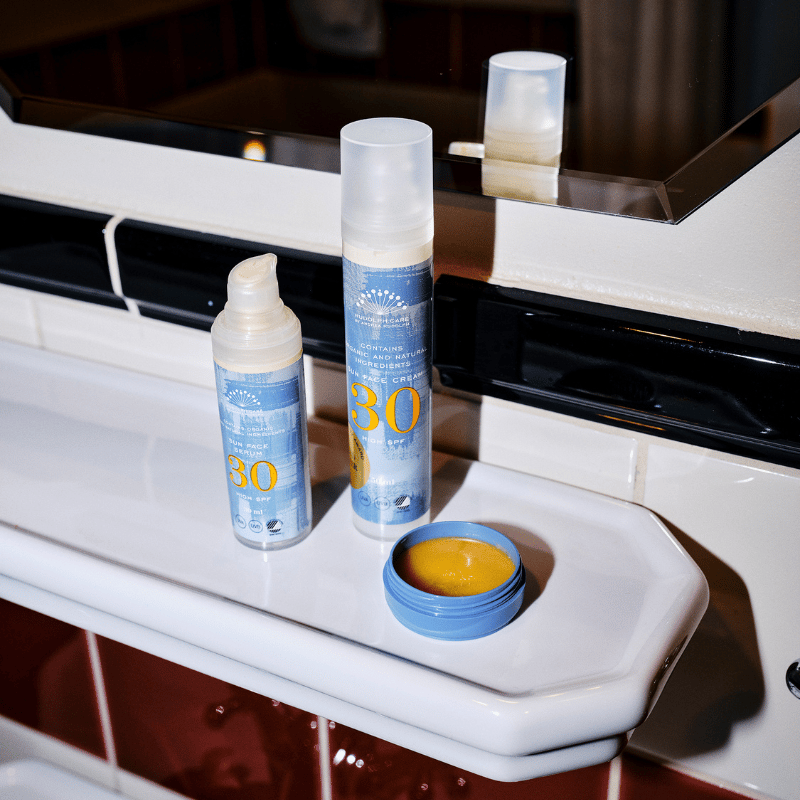 Beskyt dig selv og din familie, mens I bevæger jer i solens stråler. Uanset om det er på cykel, surfbræt, løb eller vandretur, er Sun Balm SPF 50 en parfumefri balm, som effektivt beskytter børn og voksne mod UVA- og UVB-stråler. Balmen er let at smøre ud og kan bruges både i ansigtet og på kroppen – og lige dér, hvor huden er særligt udsat og har brug for ekstra beskyttelse. Den beskyttende balm bliver på huden, selv når du sveder og er aktiv. Sun Balm SPF 50 indeholder ikke vand, men er fyldt med rene ingredienser, økologiske olier, sheasmør og bivoks.