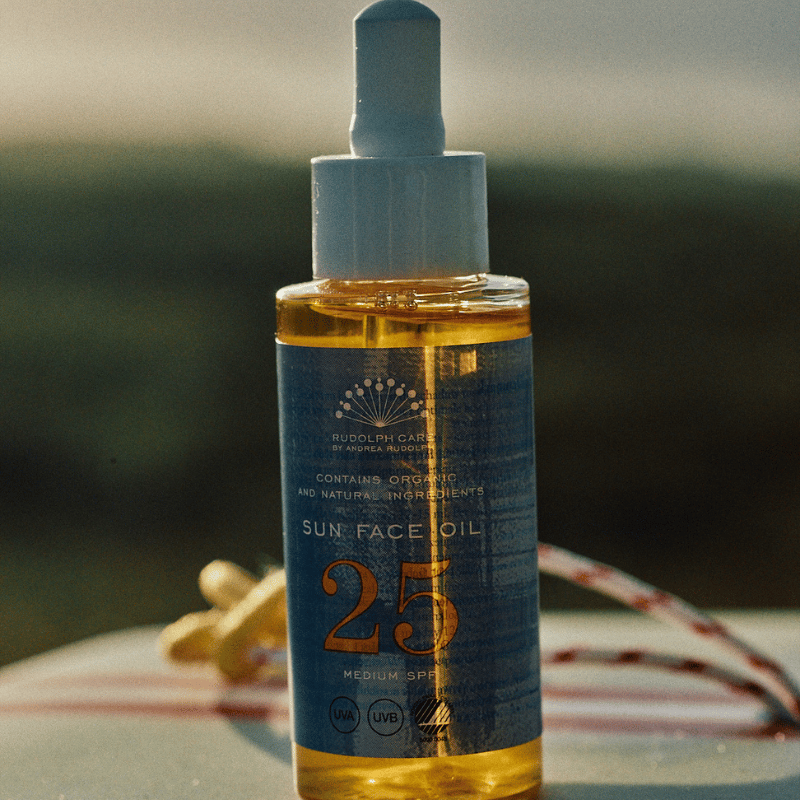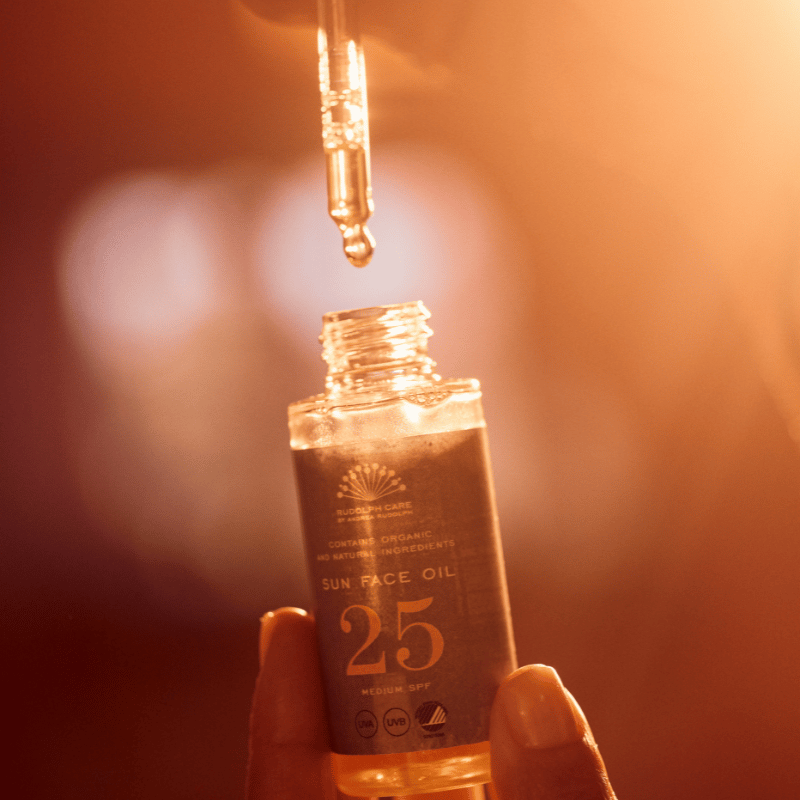 Sun Face Oil SPF 25 er en fugtgivende og plejende ansigtsolie, der beskytter huden i ansigtet mod solens stråler med solfaktor 25. Sun Face Oil har en opstrammende effekt og forbedrer hudens tekstur og tone. Konsistensen føles let og delikat på huden, og olien trænger hurtigt ind. Det høje indhold af aktive ingredienser arbejder med huden – som algeekstrakt, rig på omega 3-6-9 fedtsyrer, der opretholder hudens smidighed og blødhed. Havtornolie booster huden med vitamin C – imens hybenroseolie gennemfugter huden og efterlader den med elasticitet og glød. Certificeret med Svanemærket og Vegan Trademark.Godt at vide:- Rudolph Care