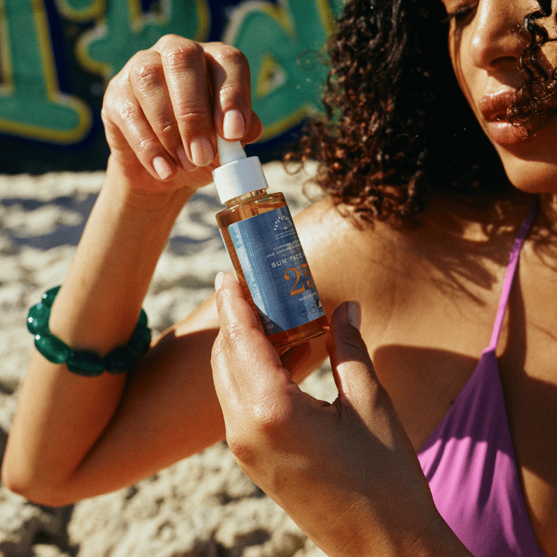 Sun Face Oil SPF 25 er en fugtgivende og plejende ansigtsolie, der beskytter huden i ansigtet mod solens stråler med solfaktor 25.