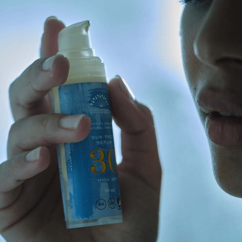 Sun Face Serum SPF30 er et effektivt serum med solfaktor. Det forbedrer hudens tone og tekstur, strammer op, giver glød fra niacinamide og fugt fra hyaluronsyre, der også reducerer fine linjer – og beskytter mod solens skadelige UVA- og UVB-stråler. For optimal solbeskyttelse skal du bruge, hvad der svarer til en teskefuld. Alternativt bruger du solserum som solbeskyttelsesbase og supplerer med solfaktor ovenpå. Certificeret med Svanemærket og Vegan Trademark.Godt at vide:- Rudolph Care