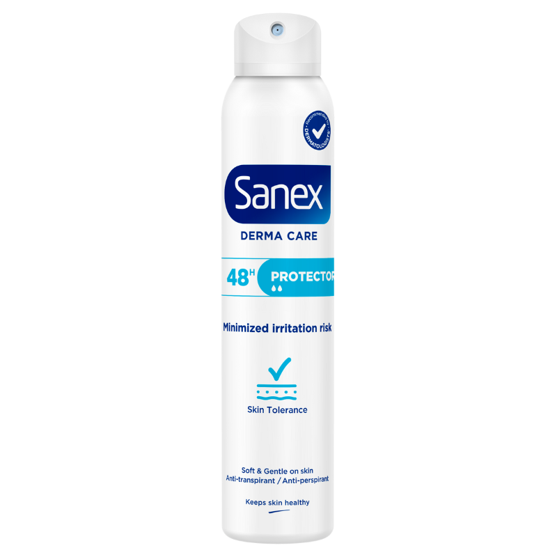 Sanex Derma Care Protector er særligt udviklet til at give effektiv beskyttelse mod sved og lugt i op til 48 timer. Forbliv frisk og tør mens du plejer din hud. Produktet er mildt og blødt mod huden med minimeret risiko for irritation. 0% Alkohol*. Dermatologisk testet.