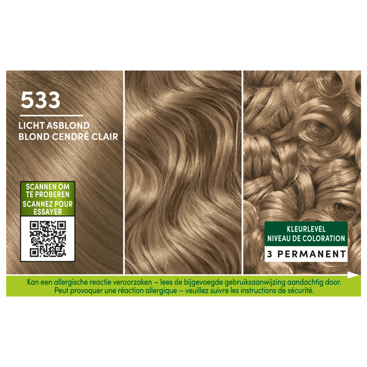 Den specifikke nuance, 533 Ash Blonde, er omhyggeligt sammensat for at give en moderne og stilfuld finish, der klæder mange forskellige hudtoner. Farven er ideel til at modvirke og neutralisere uønskede varme eller gyldne toner i håret, hvilket efterlader et rent og køligt blondt resultat. Schwarzkopf Natural & Easy er designet til at gøre hele processen, fra start til slut, så enkel som muligt, så du kan opnå et resultat, der ligner en professionel behandling, i ro og mag i dit eget hjem.