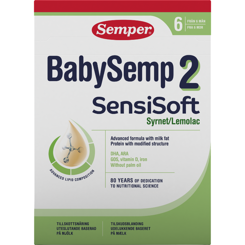 Når dit barn når 6-månedersalderen, ændrer ernæringsbehovet sig, og det kan være en udfordring at finde den rette tilskudsblanding. Mange forældre søger et skånsomt produkt, der understøtter en glad mave. BabySemp 2 SensiSoft er udviklet netop med dette for øje. Det er en tilskudsblanding, der udelukkende er baseret på mælk og designet til at være mild. Den indeholder mælkefedt, hvilket giver en rig og naturlig sammensætning, og er helt fri for palmeolie, så du kan føle dig tryg ved det valg, du træffer for dit barn.
