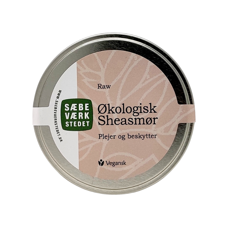 Sheasmør fra Sæbeværkstedet er velegnet til pleje og beskyttelse af læber, hænder, tør og irriteret hud. Lille dåse til tasken eller lommen.