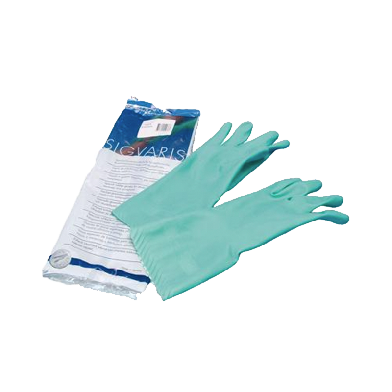Gummihandsker til kompressionsstrømper fra Sigvaris. Handskerne er beregnet til påførelse af støttestrømper samt kompressionsstrømper, der derved minimerer skader på hud og strømper, og de har noprede fingre og håndflader, der sikrer optimal påførelse af strømperne.