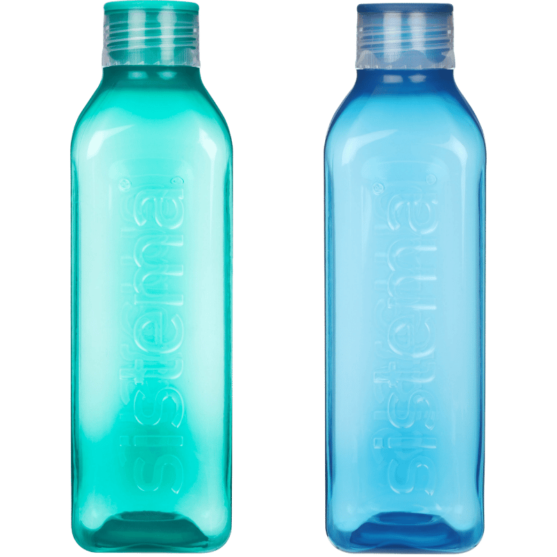 2 stk. sistema Square Bottle 1 Liter. Large Square Bottle er en smart, firkantet drikkedunk på 1L fra sistema med praktisk skruelåg, som lukker tæt. Drikkedunken har et firkantet retro design med sider, der buer indad, så flasken er let at holde om. Designet så den passer i køleskabsdøren. Det store drikkehul gør flasken nem at rengøre, og der kan let tilsættes smagsforstærkere til drikkevandet, som eks. citronskiver, agurkestave, limefrugt, isterninger o.lign. Flasken fås i de flotte farver: Minty Teal & Ocean Blue. Tåler opvaskemaskine og fryser. 100% fri for BPA og Phthalater.