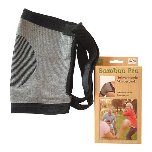 Dette skulderbind er justerbart både for og bag. Bindet er lavet med bambus trækul, der har selv-opvarmende egenskaber. Produktet giver varme til skulderleddets muskulatur, sener og led.
