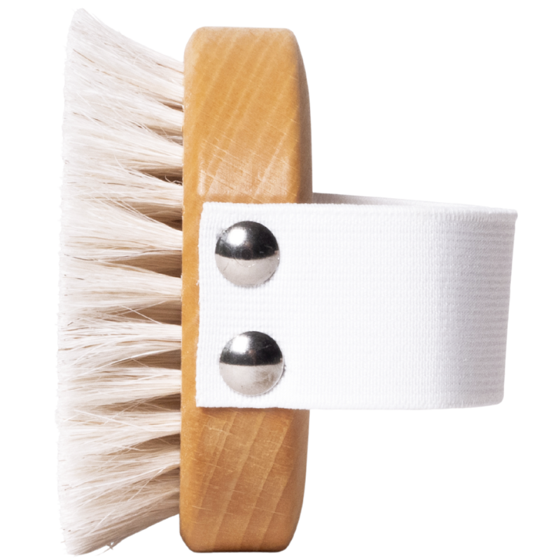 Tørbørste der forsigtigt eksfolierer huden, øger blodcirkulationen og hjælper med at reducere cellulite