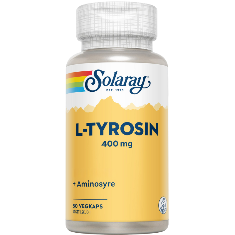 Solaray L-Tyrosin er et kosttilskud, der giver dig aminosyren L-tyrosin i en koncentreret form. Aminosyrer fungerer som kroppens byggesten til proteiner, som er vigtige for mange af kroppens funktioner. Hver kapsel indeholder 400 mg L-tyrosin.
