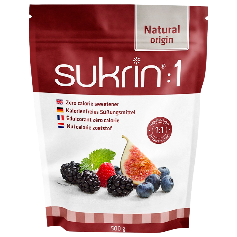 Sukrin:1 er et kalorie- og sukkerfrit sødemiddel med naturlige ingredienser, der smager som sukker og beskytter både blodsukker og tænder.