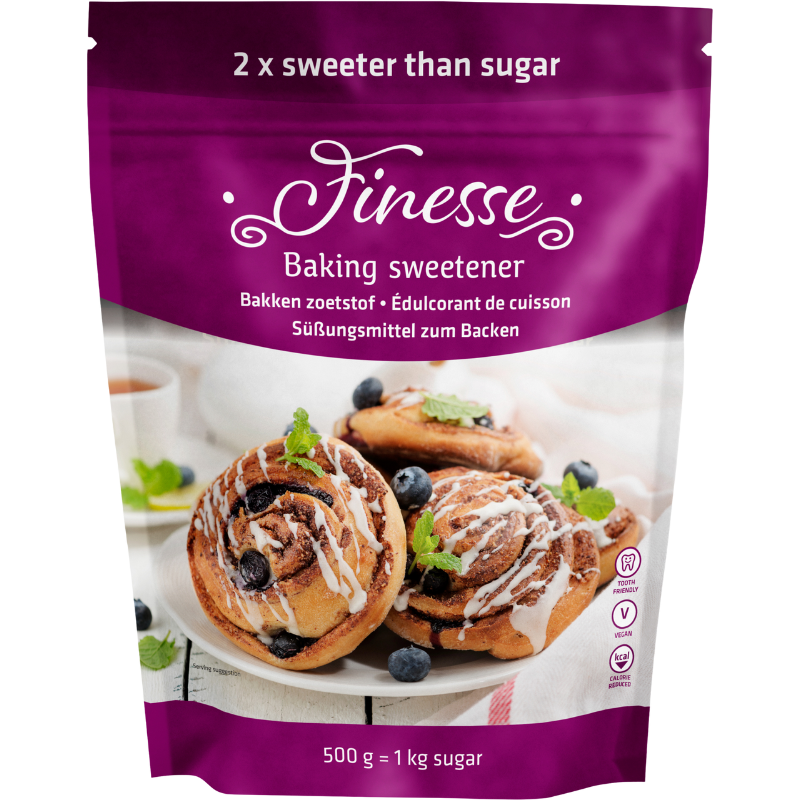 Sukrin Finesse er en kalorielet sukkererstatning, der er specialudviklet til bagning. Den giver dig den søde smag, du kender, så du kan nyde dine yndlingskager og desserter med færre kalorier og uden at gå på kompromis med resultatet.