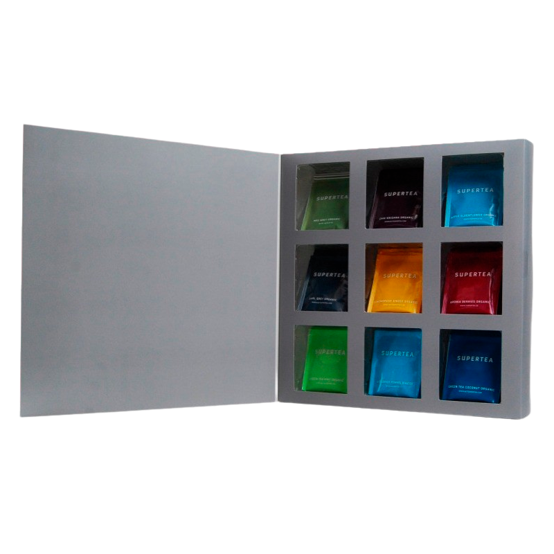 Værd at vide om Teministeriet Supertea Variety Box (72 breve): Teæsken indeholder: - 8 breve med Mrs. Grey Organic - 8 breve med Earl Grey Organic - 8 breve med Lemongrass Ginger Organic - 8 breve med Liquorice Fennel Organic - 8 breve med Green Tea Coconut Organic - 8 breve med Chai Krishna Organic - 8 breve med Aronia Berries Organic - 8 breve med Apple Elderflower Organic - 8 breve med Green Tea Mint Organic