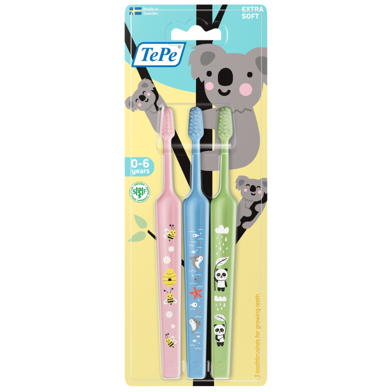 Ekstra bløde tandbørster til børns første tænder og til 6 års alderen.