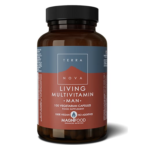 Living Multivitamin MAN fra Terranova er en multivitamin, hvis indhold er skræddersyet til mænds behov. Den indeholder en blanding af 29 vitaminer, mineraler og næringsstoffer. Formuleringen er beriget med ekstra mængder af zink, magnesium, lycopen og E-vitamin, sammenlignet med mange almindelige multivitaminer. Ydermere er den sammensat med næringsstoffer fra rødbeder, aroniabær, ingefær og vindruekerneekstrakt, som kan understøtte kroppens normale funktioner.
