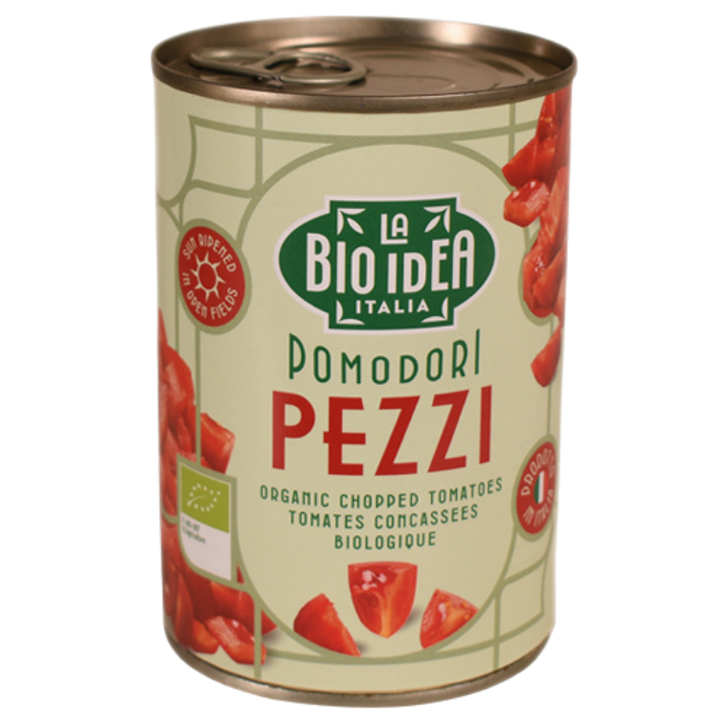 Dette produkt består af hakkede solmodne og økologisk dyrkede italienske tomater.