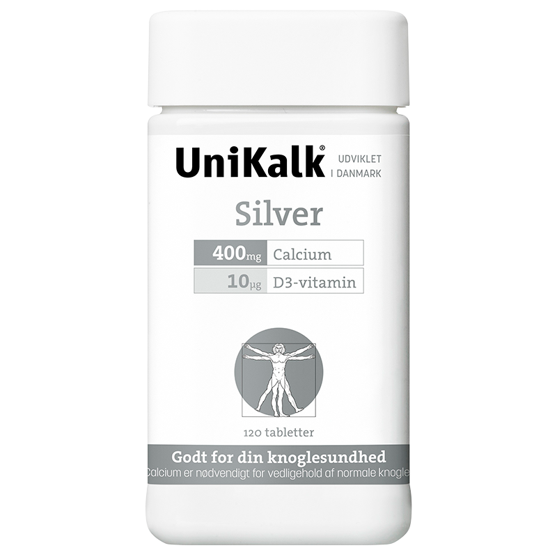 UniKalk Silver (120 kaps) er et kalk kosttilskud, der er fremstillet med Kalk 400 mg og D-vitamin 10 µg. Kalk er også kendt, som calcium er nødvendigt for vedligeholdelse af normale knogler samt tænder.
