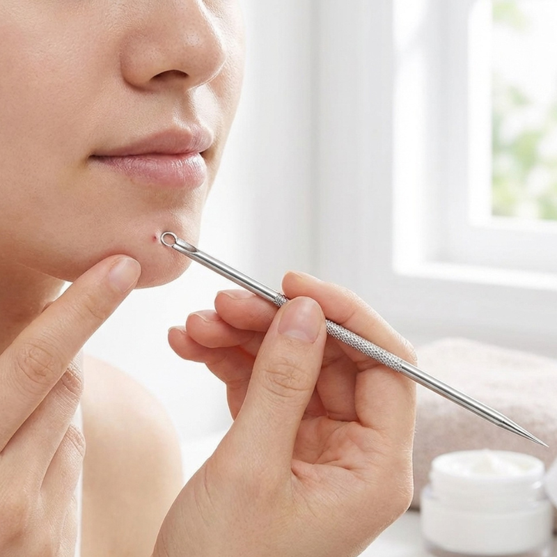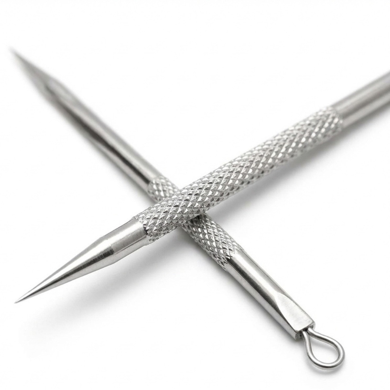 Komedonværktøj med nål: 2-i-1 komedonværktøj til mere præcis hudpleje. Giver bedre kontrol end fingrene og passer godt ind i en hygiejnisk rutine.