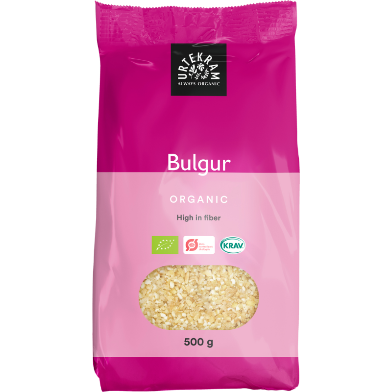 Økologisk Bulgur Ø fra Urtekram (500 gram) Består af dampbehandlede, tørrede og knækket durumhvede.